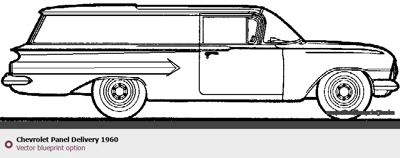 Raster blueprint of the 1960 Chevrolet Panel Delivery Tag. This free downloadable image can be used for graphic projects, digital design, and 3D modeling. The file provides accurate exterior proportions of the vehicle. Model year: 1960. Body type: Tag.