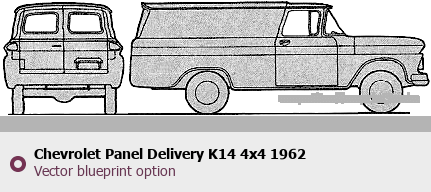 Raster blueprint of the 1962 Chevrolet Panel Delivery K14 4x4 Tag. This free downloadable image can be used for graphic projects, digital design, and 3D modeling. The file provides accurate exterior proportions of the vehicle. Model year: 1962. Body type: Tag.