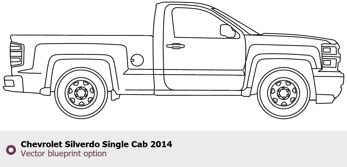 Raster blueprint of the 2014 Chevrolet Silverdo Single Cab Tag. This free downloadable image can be used for graphic projects, digital design, and 3D modeling. The file provides accurate exterior proportions of the vehicle. Model year: 2014. Body type: Tag.