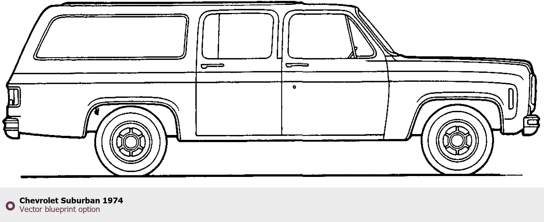 Raster blueprint of the 1974 Chevrolet Suburban SUV. This free downloadable image can be used for graphic projects, digital design, and 3D modeling. The file provides accurate exterior proportions of the vehicle. Model year: 1974. Body type: SUV.