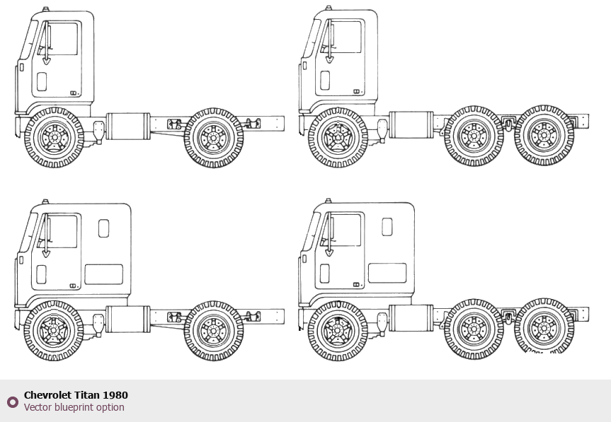 Raster blueprint of the 1980 Chevrolet Titan Heavy Truck. This free downloadable image can be used for graphic projects, digital design, and 3D modeling. The file provides accurate exterior proportions of the vehicle. Model year: 1980. Body type: Heavy Truck.