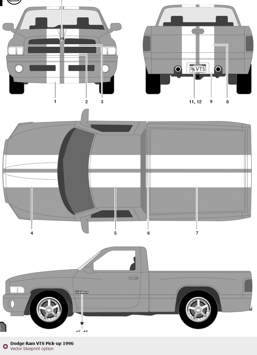3 Gen Facelift DR/DH Quad Cab Short Bed ∙ Extended Cab ∙ Top View Pickup Truck