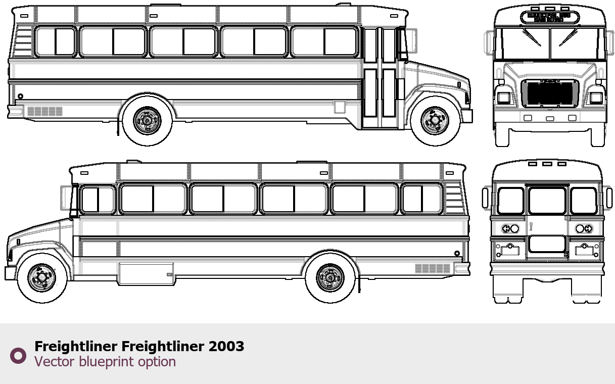 Raster blueprint of the 2003 Freightliner Truck Heavy Truck. This free downloadable image can be used for graphic projects, digital design, and 3D modeling. The file provides accurate exterior proportions of the vehicle. Model year: 2003. Body type: Heavy Truck.