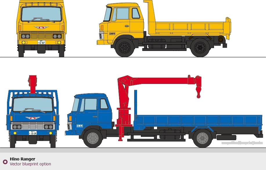 Raster blueprint of the Hino Ranger Heavy Truck. This free downloadable image can be used for graphic projects, digital design, and 3D modeling. The file provides accurate exterior proportions of the vehicle. Body type: Heavy Truck.