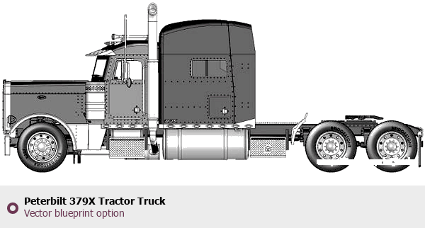 Raster blueprint of the Peterbilt 379X Tractor Truck Heavy Truck. This free downloadable image can be used for graphic projects, digital design, and 3D modeling. The file provides accurate exterior proportions of the vehicle. Body type: Heavy Truck.