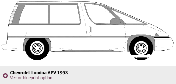 Raster blueprint of the 1993 Chevrolet Lumina APV Sedan. This free downloadable image can be used for graphic projects, digital design, and 3D modeling. The file provides accurate exterior proportions of the vehicle. Model year: 1993. Body type: Sedan.