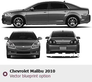 Raster blueprint of the 2010 Chevrolet Malibu Tag. This free downloadable image can be used for graphic projects, digital design, and 3D modeling. The file provides accurate exterior proportions of the vehicle. Model year: 2010. Body type: Tag.