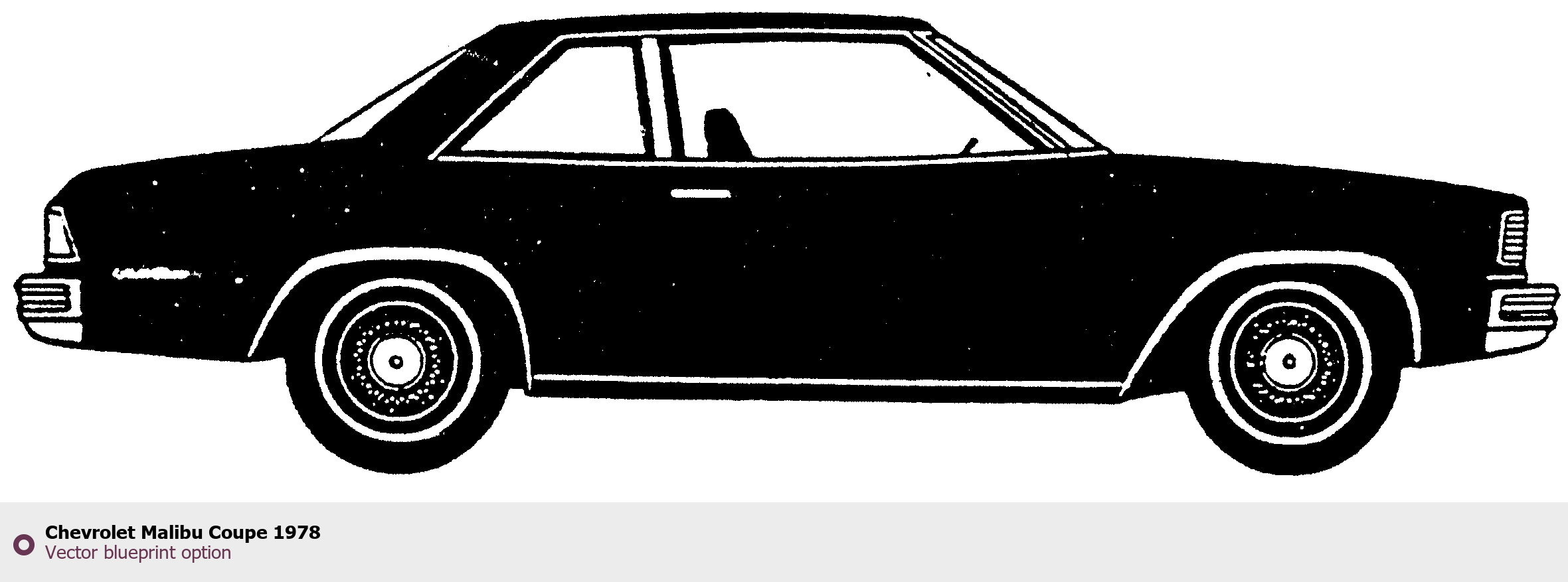 Raster blueprint of the 1978 Chevrolet Malibu Coupe Coupe. This free downloadable image can be used for graphic projects, digital design, and 3D modeling. The file provides accurate exterior proportions of the vehicle. Model year: 1978. Body type: Coupe.