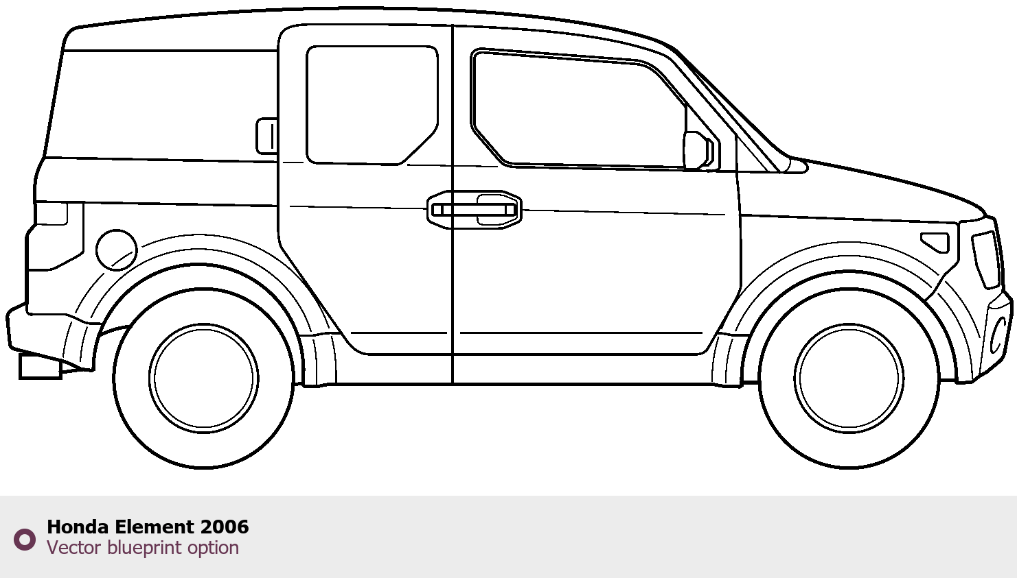 Raster blueprint of the 2006 Honda Element SUV. This free downloadable image can be used for graphic projects, digital design, and 3D modeling. The file provides accurate exterior proportions of the vehicle. Model year: 2006. Body type: SUV.
