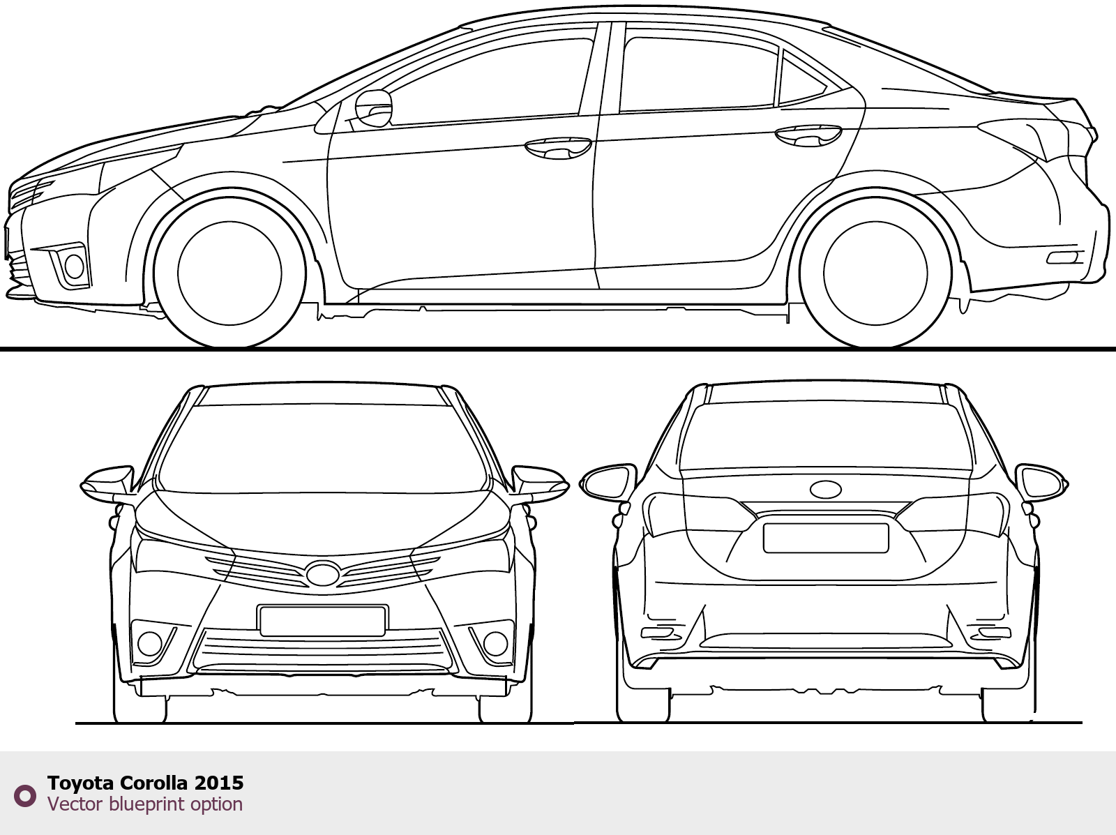 Raster blueprint of the 2015 Toyota Corolla Tag. This free downloadable image can be used for graphic projects, digital design, and 3D modeling. The file provides accurate exterior proportions of the vehicle. Model year: 2015. Body type: Tag.