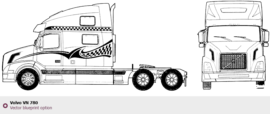 Raster blueprint of the Volvo VN 780 Heavy Truck. This free downloadable image can be used for graphic projects, digital design, and 3D modeling. The file provides accurate exterior proportions of the vehicle. Body type: Heavy Truck.