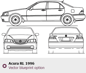 Raster blueprint of the 1996 Acura RL Sedan. This free downloadable image can be used for graphic projects, digital design, and 3D modeling. The file provides accurate exterior proportions of the vehicle. Model year: 1996. Body type: Sedan.