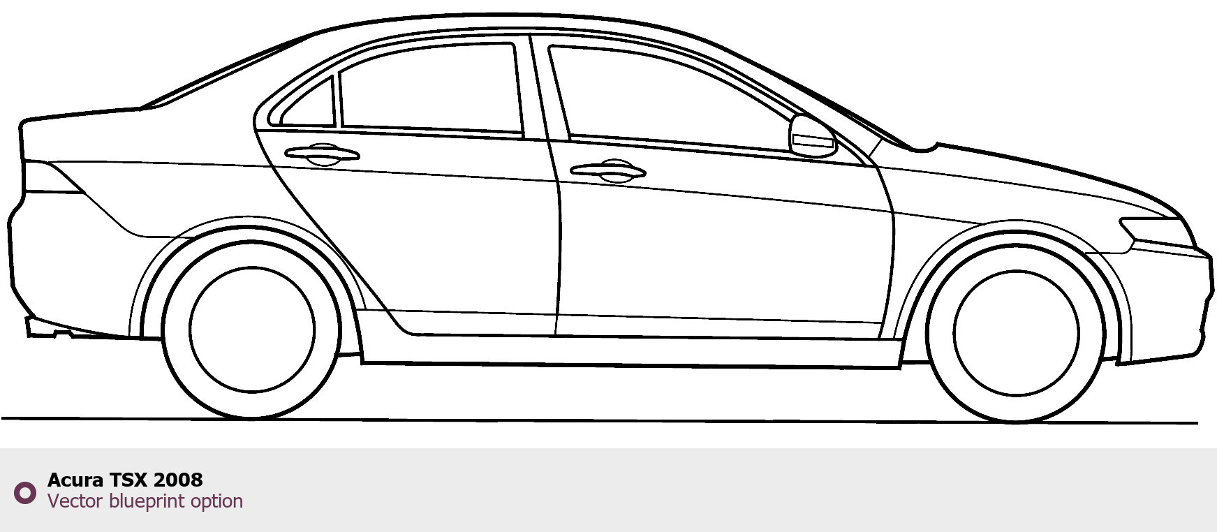 Raster blueprint of the 2008 Acura TSX Tag. This free downloadable image can be used for graphic projects, digital design, and 3D modeling. The file provides accurate exterior proportions of the vehicle. Model year: 2008. Body type: Tag.
