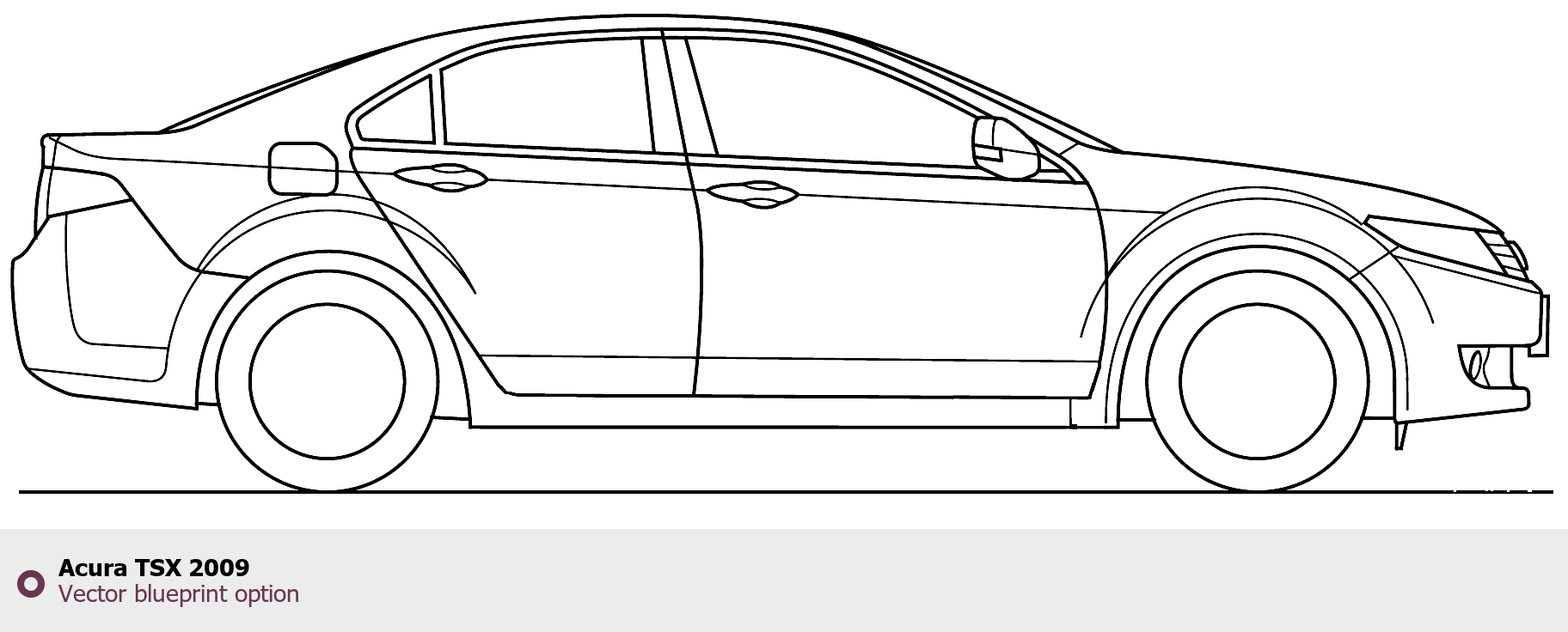 Raster blueprint of the 2009 Acura TSX Tag. This free downloadable image can be used for graphic projects, digital design, and 3D modeling. The file provides accurate exterior proportions of the vehicle. Model year: 2009. Body type: Tag.