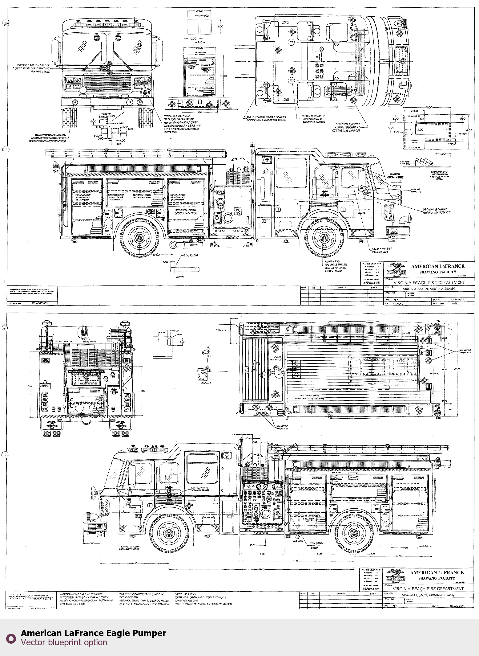 Raster blueprint of the American LaFrance Eagle Pumper Heavy Truck. This free downloadable image can be used for graphic projects, digital design, and 3D modeling. The file provides accurate exterior proportions of the vehicle. Body type: Heavy Truck.
