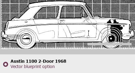Raster blueprint of the 1968 Austin 1100 2-Door Pickup Truck. This free downloadable image can be used for graphic projects, digital design, and 3D modeling. The file provides accurate exterior proportions of the vehicle. Model year: 1968. Body type: Pickup Truck.