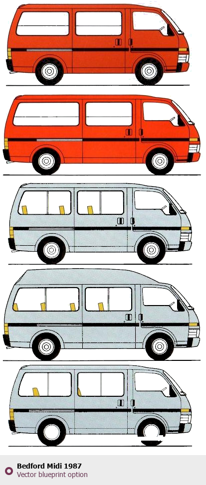 Raster blueprint of the 1987 Bedford Midi Tag. This free downloadable image can be used for graphic projects, digital design, and 3D modeling. The file provides accurate exterior proportions of the vehicle. Model year: 1987. Body type: Tag.
