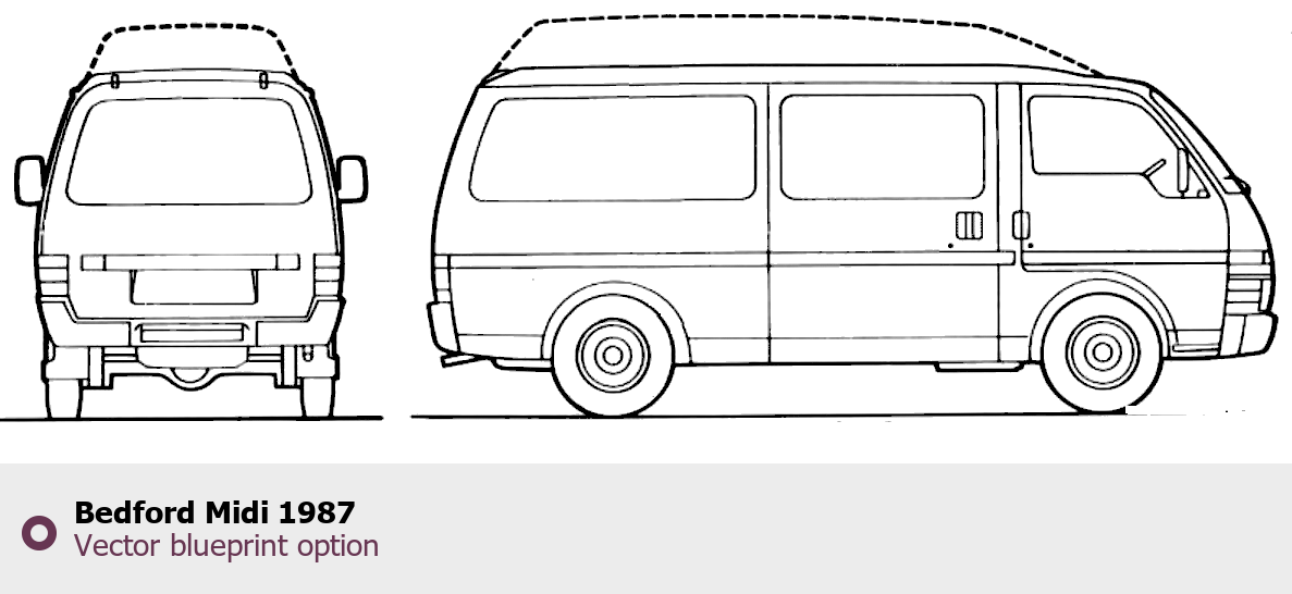 Raster blueprint of the 1987 Bedford Midi Tag. This free downloadable image can be used for graphic projects, digital design, and 3D modeling. The file provides accurate exterior proportions of the vehicle. Model year: 1987. Body type: Tag.