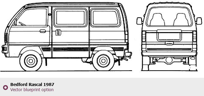 Raster blueprint of the 1987 Bedford Rascal Tag. This free downloadable image can be used for graphic projects, digital design, and 3D modeling. The file provides accurate exterior proportions of the vehicle. Model year: 1987. Body type: Tag.