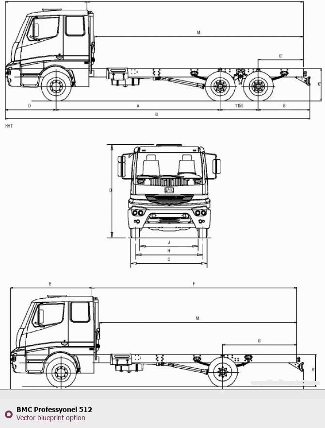 Raster blueprint of the BMC Professyonel 512 Heavy Truck. This free downloadable image can be used for graphic projects, digital design, and 3D modeling. The file provides accurate exterior proportions of the vehicle. Body type: Heavy Truck.