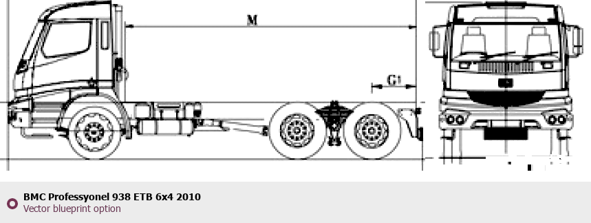 Raster blueprint of the 2010 BMC Professyonel 938 ETB 6x4 Heavy Truck. This free downloadable image can be used for graphic projects, digital design, and 3D modeling. The file provides accurate exterior proportions of the vehicle. Model year: 2010. Body type: Heavy Truck.