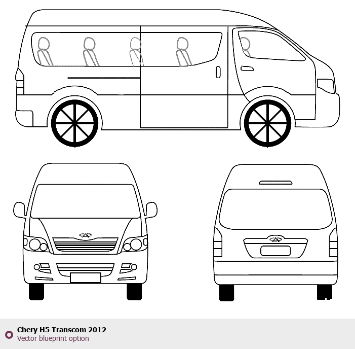 Raster blueprint of the 2012 Chery H5 Transcom Wagon. This free downloadable image can be used for graphic projects, digital design, and 3D modeling. The file provides accurate exterior proportions of the vehicle. Model year: 2012. Body type: Wagon.