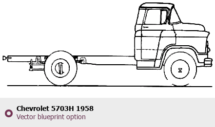 Raster blueprint of the 1958 Chevrolet 5703H Heavy Truck. This free downloadable image can be used for graphic projects, digital design, and 3D modeling. The file provides accurate exterior proportions of the vehicle. Model year: 1958. Body type: Heavy Truck.