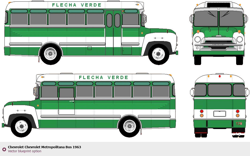 Raster blueprint of the 1963 Chevrolet Metropolitana Bus Bus. This free downloadable image can be used for graphic projects, digital design, and 3D modeling. The file provides accurate exterior proportions of the vehicle. Model year: 1963. Body type: Bus.