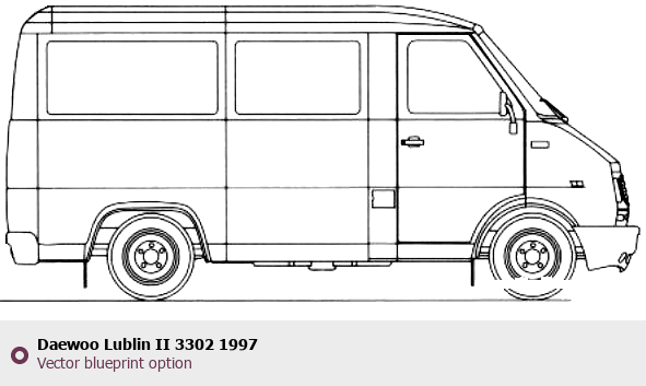 Raster blueprint of the 1997 Daewoo Lublin II 3302 Heavy Truck. This free downloadable image can be used for graphic projects, digital design, and 3D modeling. The file provides accurate exterior proportions of the vehicle. Model year: 1997. Body type: Heavy Truck.