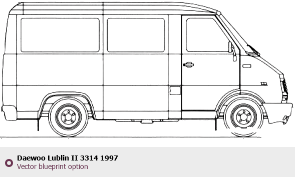 Raster blueprint of the 1997 Daewoo Lublin II 3314 Heavy Truck. This free downloadable image can be used for graphic projects, digital design, and 3D modeling. The file provides accurate exterior proportions of the vehicle. Model year: 1997. Body type: Heavy Truck.