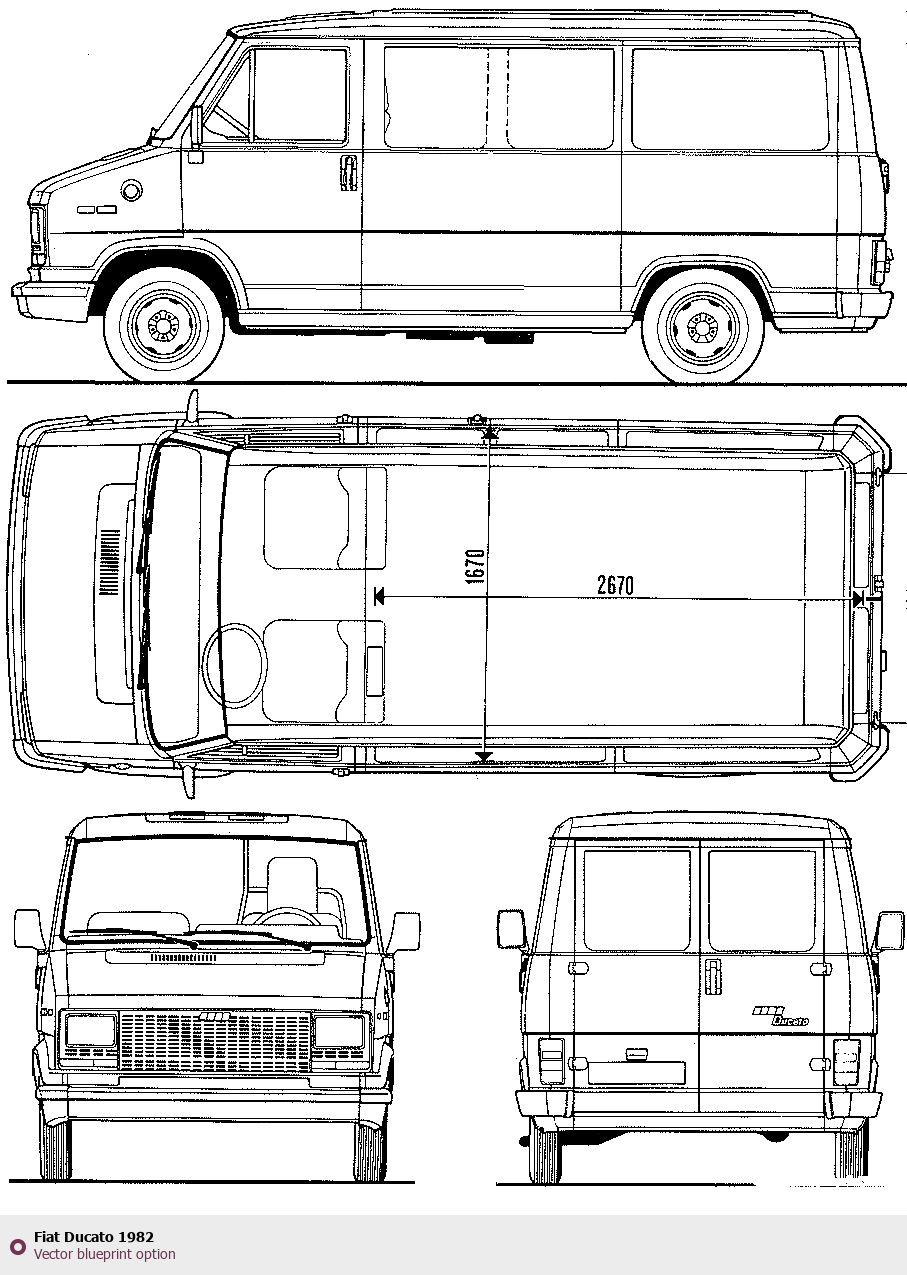 Raster blueprint of the 1982 Fiat Ducato Tag. This free downloadable image can be used for graphic projects, digital design, and 3D modeling. The file provides accurate exterior proportions of the vehicle. Model year: 1982. Body type: Tag.
