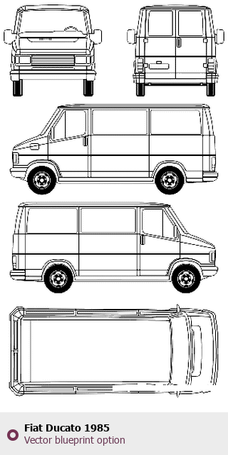 Raster blueprint of the 1985 Fiat Ducato Tag. This free downloadable image can be used for graphic projects, digital design, and 3D modeling. The file provides accurate exterior proportions of the vehicle. Model year: 1985. Body type: Tag.