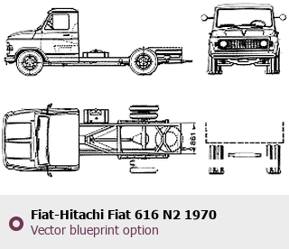 Raster blueprint of the 1970 Fiat-Hitachi Fiat 616 N2 Heavy Truck. This free downloadable image can be used for graphic projects, digital design, and 3D modeling. The file provides accurate exterior proportions of the vehicle. Model year: 1970. Body type: Heavy Truck.