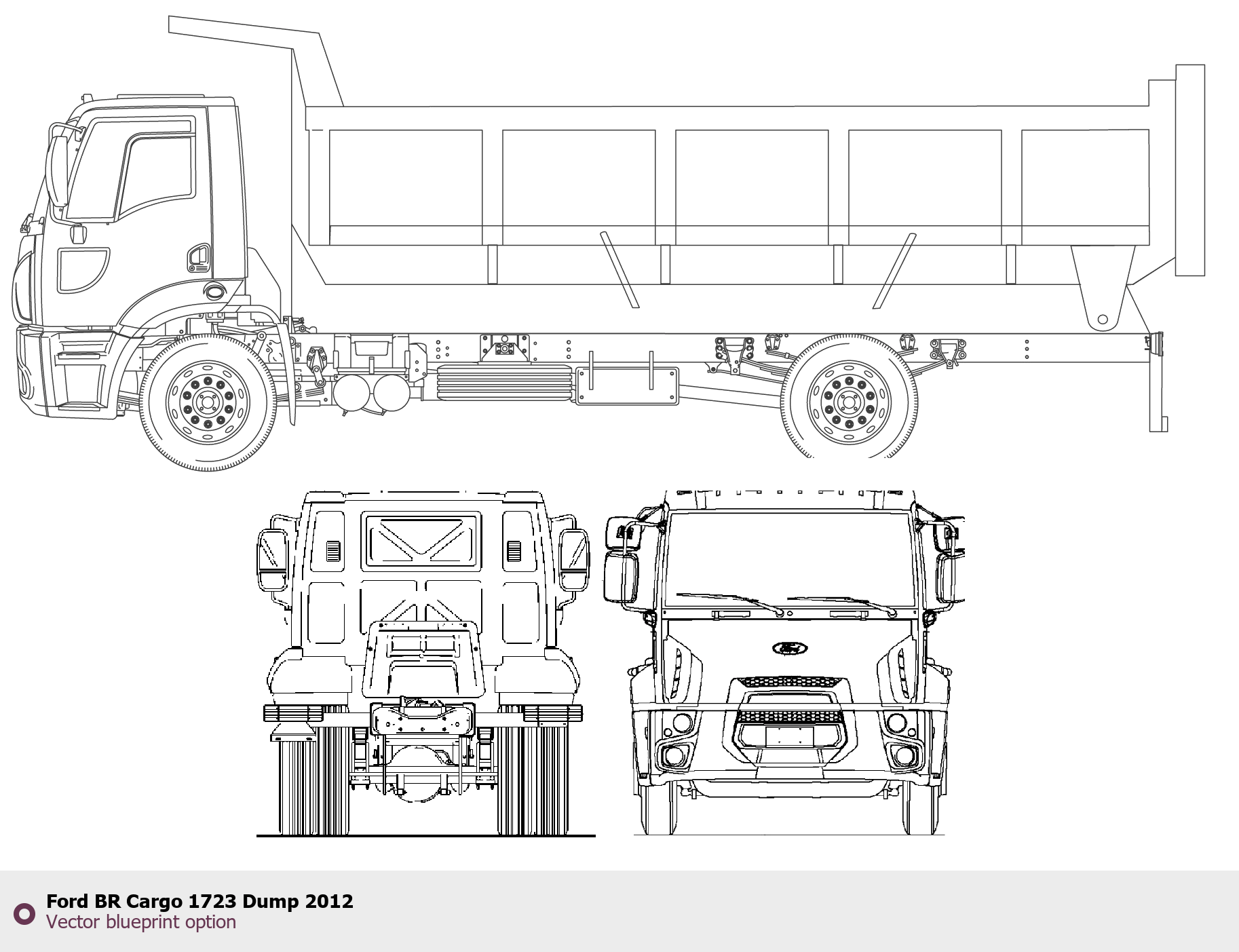 Raster blueprint of the 2012 Ford BR Cargo 1723 Dump Heavy Truck. This free downloadable image can be used for graphic projects, digital design, and 3D modeling. The file provides accurate exterior proportions of the vehicle. Model year: 2012. Body type: Heavy Truck.