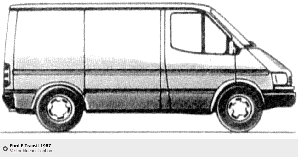 Raster blueprint of the 1987 Ford E Transit Tag. This free downloadable image can be used for graphic projects, digital design, and 3D modeling. The file provides accurate exterior proportions of the vehicle. Model year: 1987. Body type: Tag.