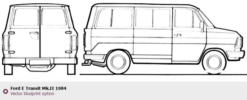 Raster blueprint of the 1984 Ford E Transit Mk.II Tag. This free downloadable image can be used for graphic projects, digital design, and 3D modeling. The file provides accurate exterior proportions of the vehicle. Model year: 1984. Body type: Tag.
