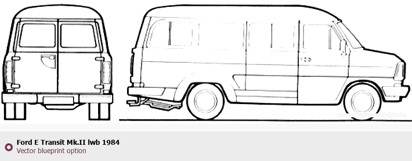Raster blueprint of the 1984 Ford E Transit Mk.II lwb Tag. This free downloadable image can be used for graphic projects, digital design, and 3D modeling. The file provides accurate exterior proportions of the vehicle. Model year: 1984. Body type: Tag.