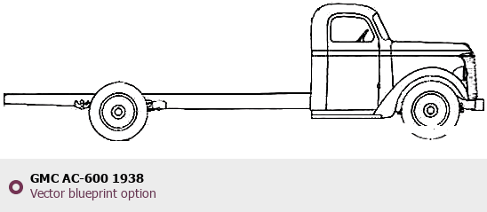 Raster blueprint of the 1938 GMC AC-600 Heavy Truck. This free downloadable image can be used for graphic projects, digital design, and 3D modeling. The file provides accurate exterior proportions of the vehicle. Model year: 1938. Body type: Heavy Truck.