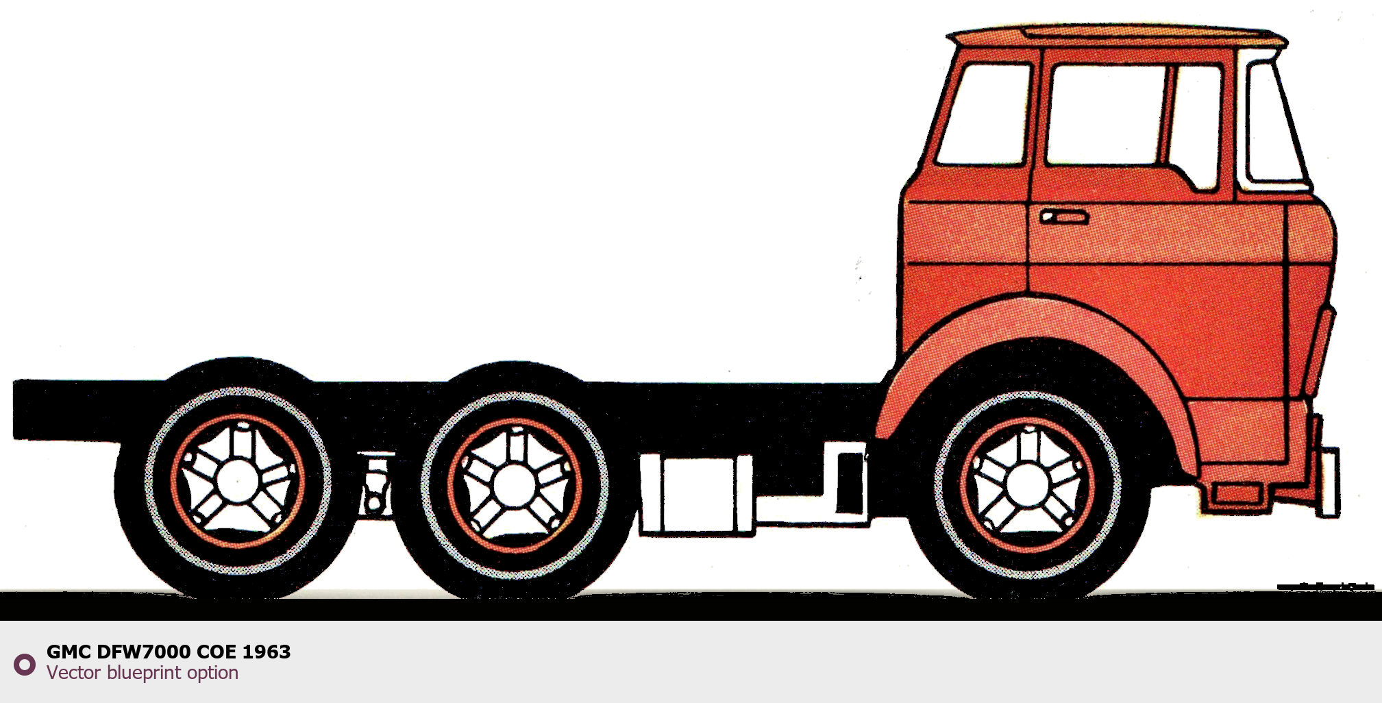 Raster blueprint of the 1963 GMC DFW7000 COE Heavy Truck. This free downloadable image can be used for graphic projects, digital design, and 3D modeling. The file provides accurate exterior proportions of the vehicle. Model year: 1963. Body type: Heavy Truck.