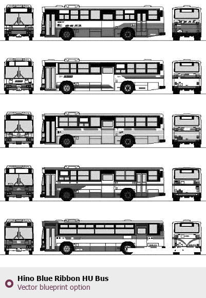 Raster blueprint of the Hino Blue Ribbon HU Bus Bus. This free downloadable image can be used for graphic projects, digital design, and 3D modeling. The file provides accurate exterior proportions of the vehicle. Body type: Bus.