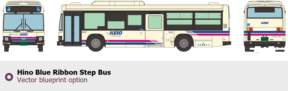 Raster blueprint of the Hino Blue Ribbon Step Bus Bus. This free downloadable image can be used for graphic projects, digital design, and 3D modeling. The file provides accurate exterior proportions of the vehicle. Body type: Bus.