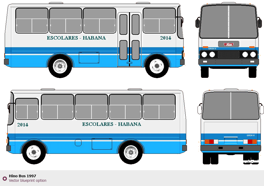 Raster blueprint of the 1997 Hino Bus Bus. This free downloadable image can be used for graphic projects, digital design, and 3D modeling. The file provides accurate exterior proportions of the vehicle. Model year: 1997. Body type: Bus.