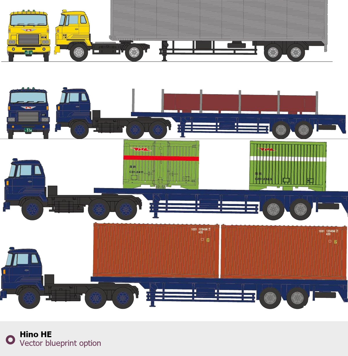 Raster blueprint of the Hino HE Heavy Truck. This free downloadable image can be used for graphic projects, digital design, and 3D modeling. The file provides accurate exterior proportions of the vehicle. Body type: Heavy Truck.