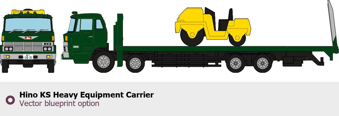Raster blueprint of the Hino KS Heavy Equipment Carrier Heavy Truck. This free downloadable image can be used for graphic projects, digital design, and 3D modeling. The file provides accurate exterior proportions of the vehicle. Body type: Heavy Truck.