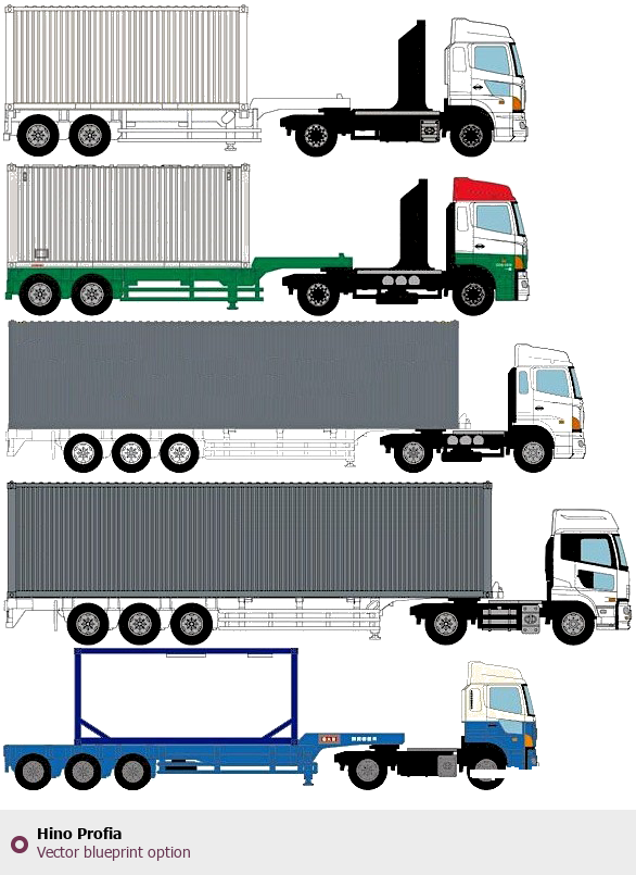 Raster blueprint of the Hino Profia Heavy Truck. This free downloadable image can be used for graphic projects, digital design, and 3D modeling. The file provides accurate exterior proportions of the vehicle. Body type: Heavy Truck.