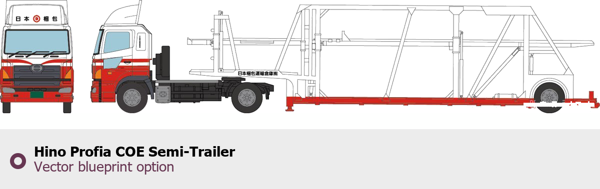 Raster blueprint of the Hino Profia COE Semi-Trailer Heavy Truck. This free downloadable image can be used for graphic projects, digital design, and 3D modeling. The file provides accurate exterior proportions of the vehicle. Body type: Heavy Truck.