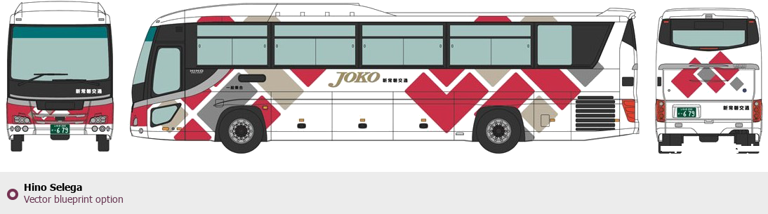 Raster blueprint of the Hino Selega Bus. This free downloadable image can be used for graphic projects, digital design, and 3D modeling. The file provides accurate exterior proportions of the vehicle. Body type: Bus.