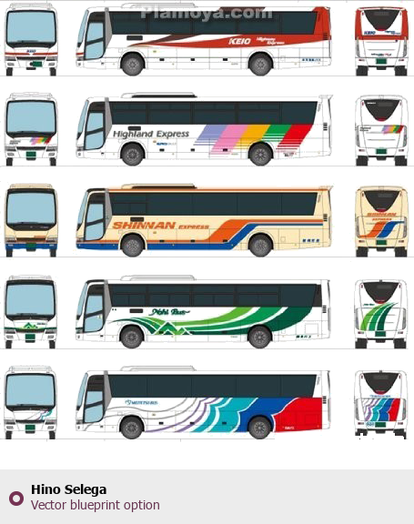 Raster blueprint of the Hino Selega Bus. This free downloadable image can be used for graphic projects, digital design, and 3D modeling. The file provides accurate exterior proportions of the vehicle. Body type: Bus.