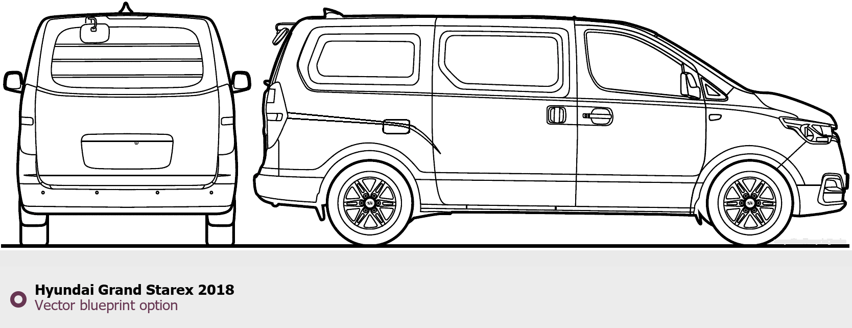 Raster blueprint of the 2018 Hyundai Grand Starex Tag. This free downloadable image can be used for graphic projects, digital design, and 3D modeling. The file provides accurate exterior proportions of the vehicle. Model year: 2018. Body type: Tag.