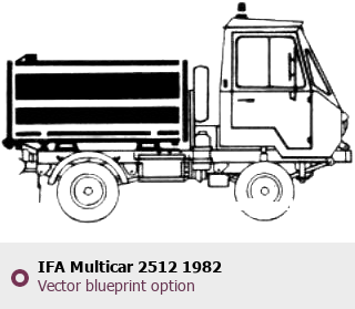 Raster blueprint of the 1982 IFA Multicar 2512 Heavy Truck. This free downloadable image can be used for graphic projects, digital design, and 3D modeling. The file provides accurate exterior proportions of the vehicle. Model year: 1982. Body type: Heavy Truck.